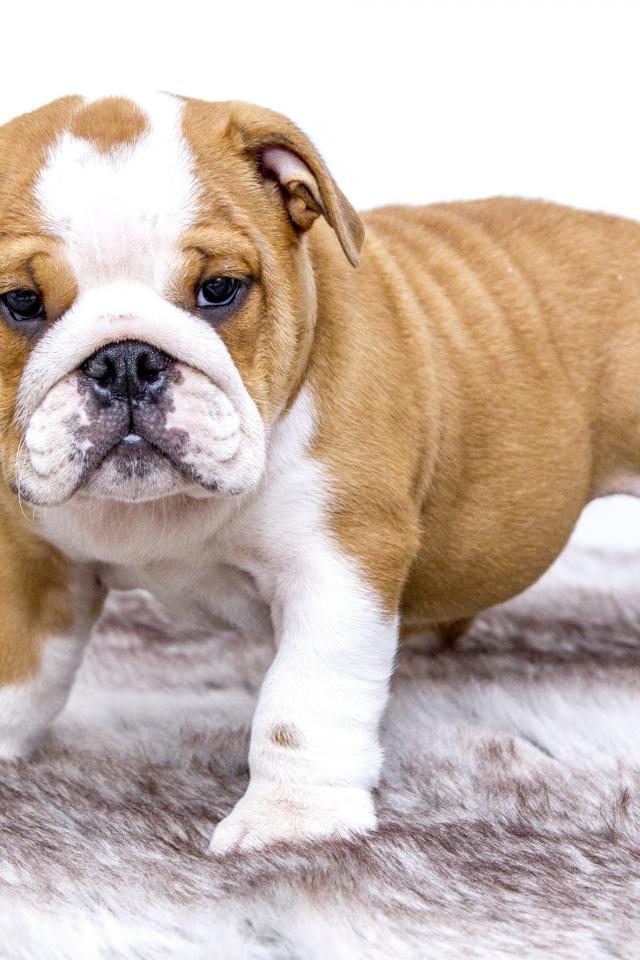 Wallpaper English Bulldog puppy on a litter