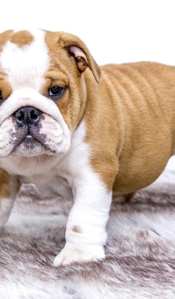 Wallpaper English Bulldog puppy on a litter