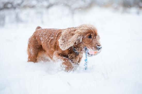 Wallpaper Spaniel with a wet nose and stuck out languages walks in purple colors