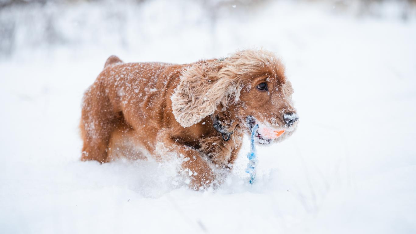 » Wallpaper Spaniel walks in cold snow