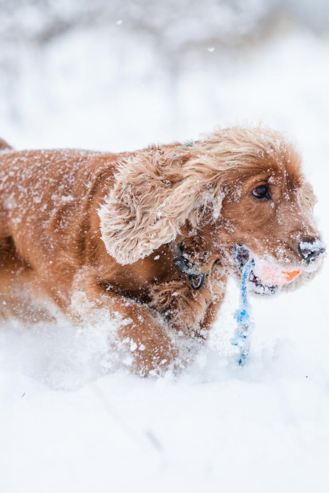 Wallpaper Spaniel with a wet nose and stuck out languages walks in purple colors