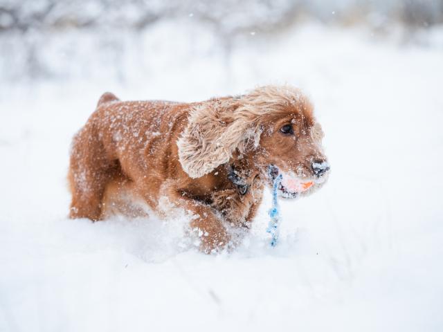 » Wallpaper Spaniel walks in cold snow