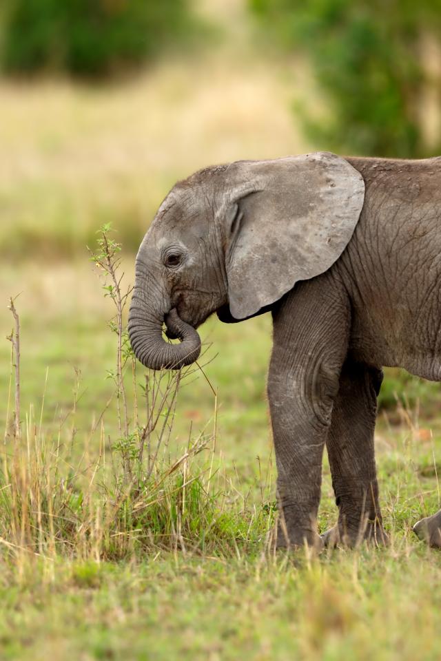 Wallpaper A little gray elephant comes along the grass