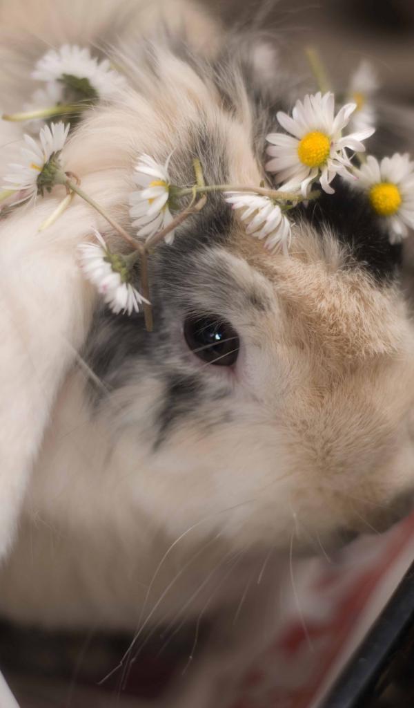 » Wallpaper Small decorative rabbit with chamomiles