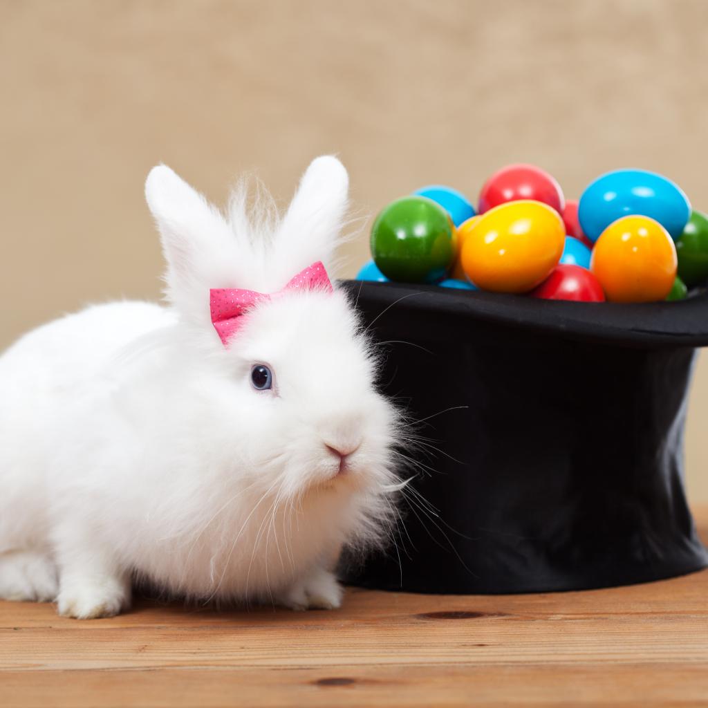 Wallpaper White Rabbit with a Black Cylinder with Dyed Eggs