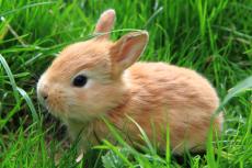 Wallpaper Red fluffy decorative rabbit in a bow on a white background