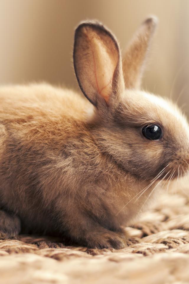 Wallpaper Funny decorative rabbit sits in a multicolored box