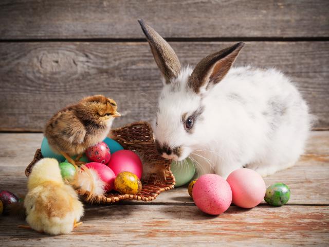 Wallpaper Decorative rabbit with chickens and eggs