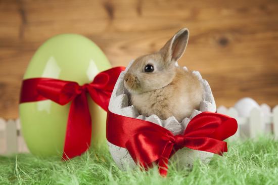 Wallpaper Little decorative rabbit in an egg with a red bow