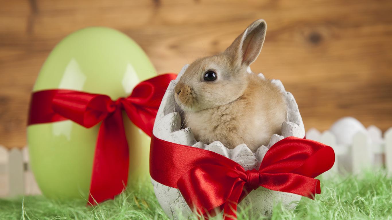 Wallpaper Little decorative rabbit in an egg with a red bow