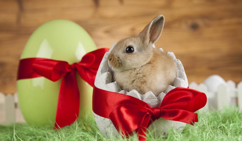 Wallpaper Little decorative rabbit in an egg with a red bow
