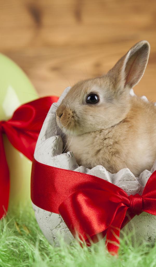 Wallpaper Little decorative rabbit in an egg with a red bow