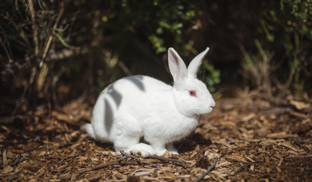 Wallpaper White rabbit with red eyes on the ground