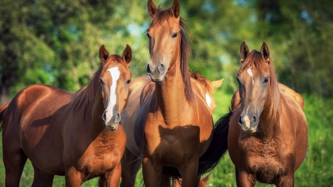 Wallpaper Beautiful brown horses jumping on the ground under the beautiful sky