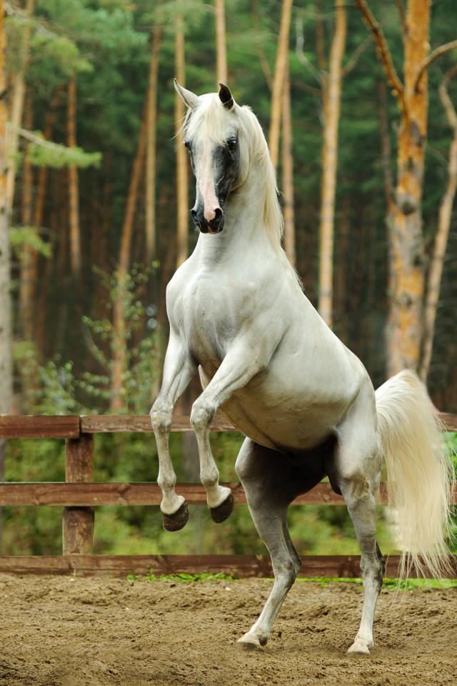 Wallpaper White horse stood on its hind legs