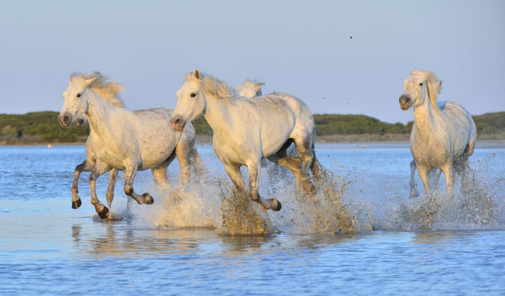 Wallpaper White horses run on water