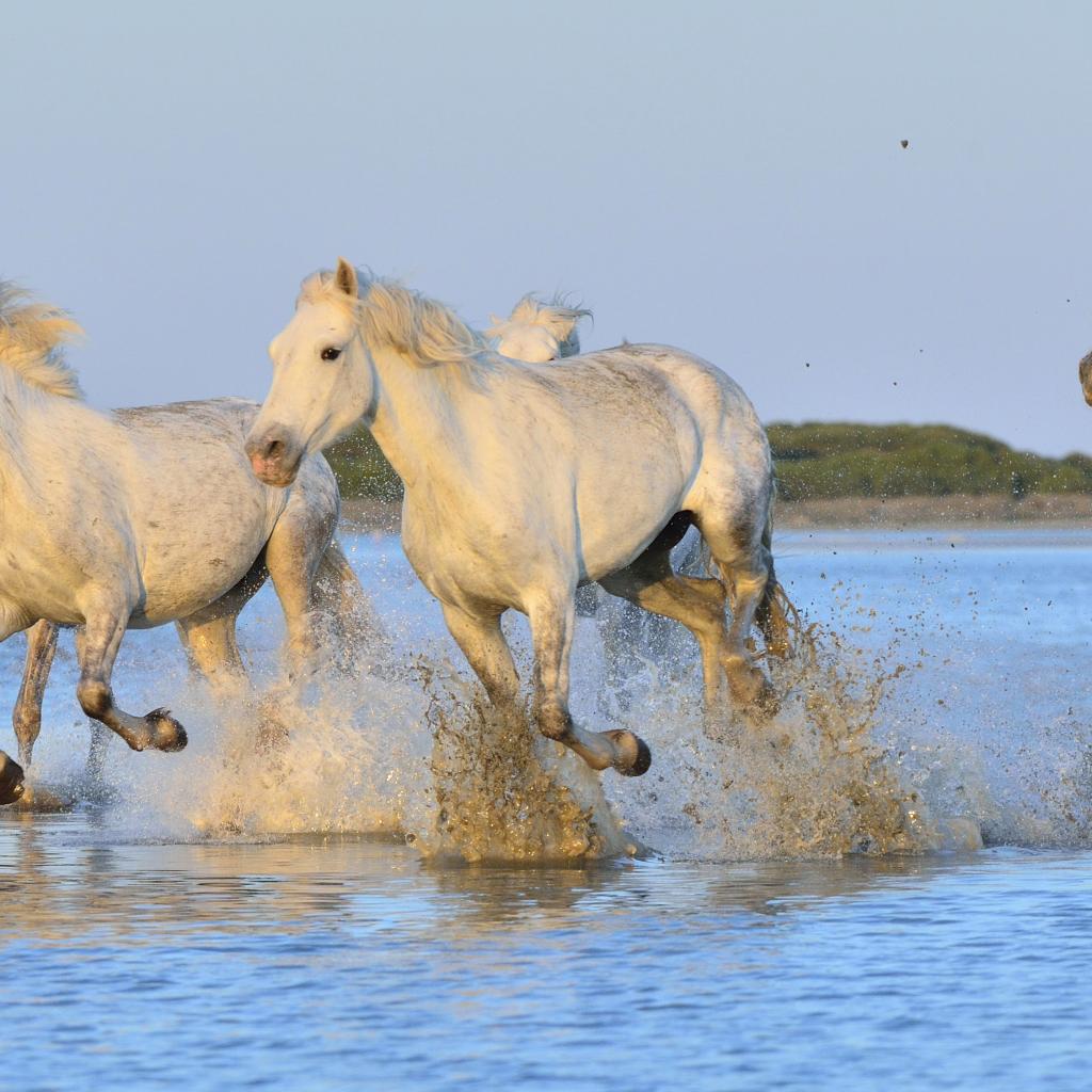 Wallpaper White horses run on water