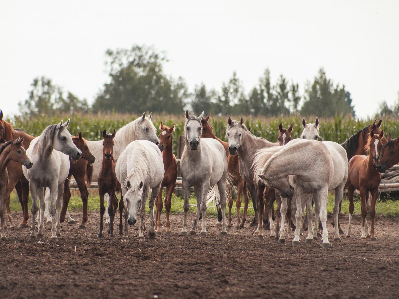 Wallpaper A large herd of beautiful white and brown horses
