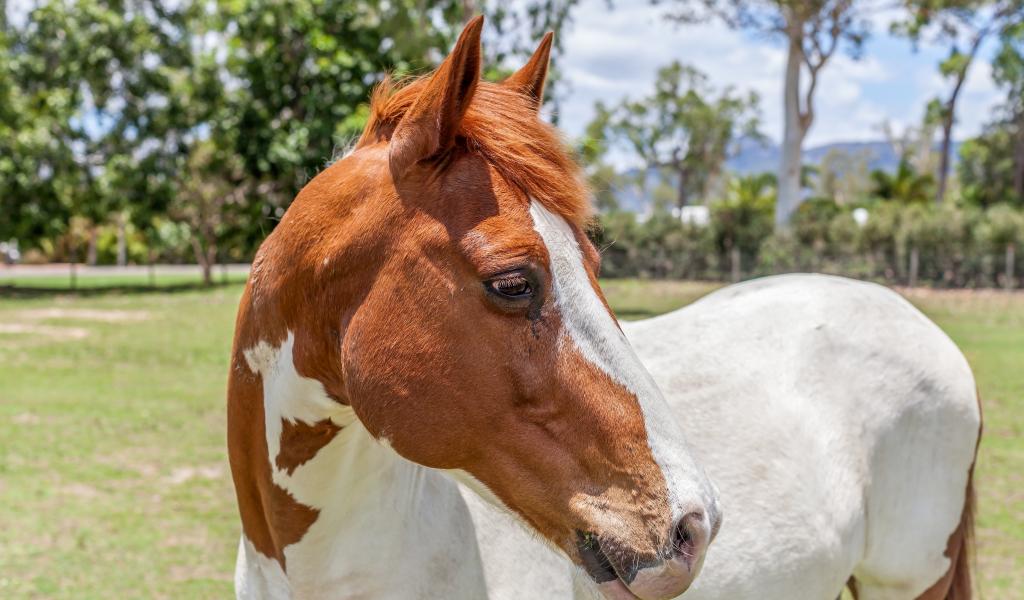 » Wallpaper White-brown horse on the farm
