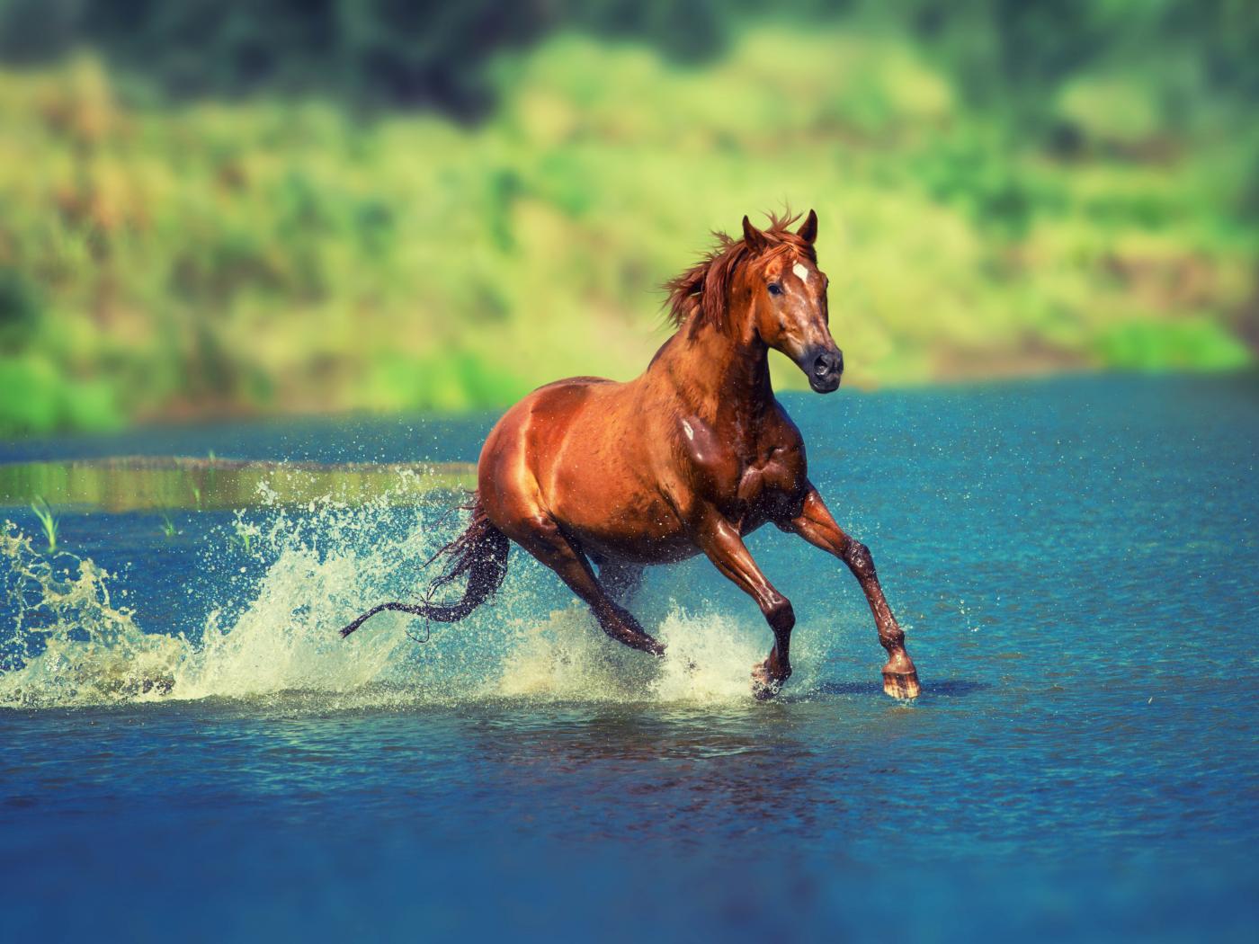Wallpaper A brown horse jumps on the water