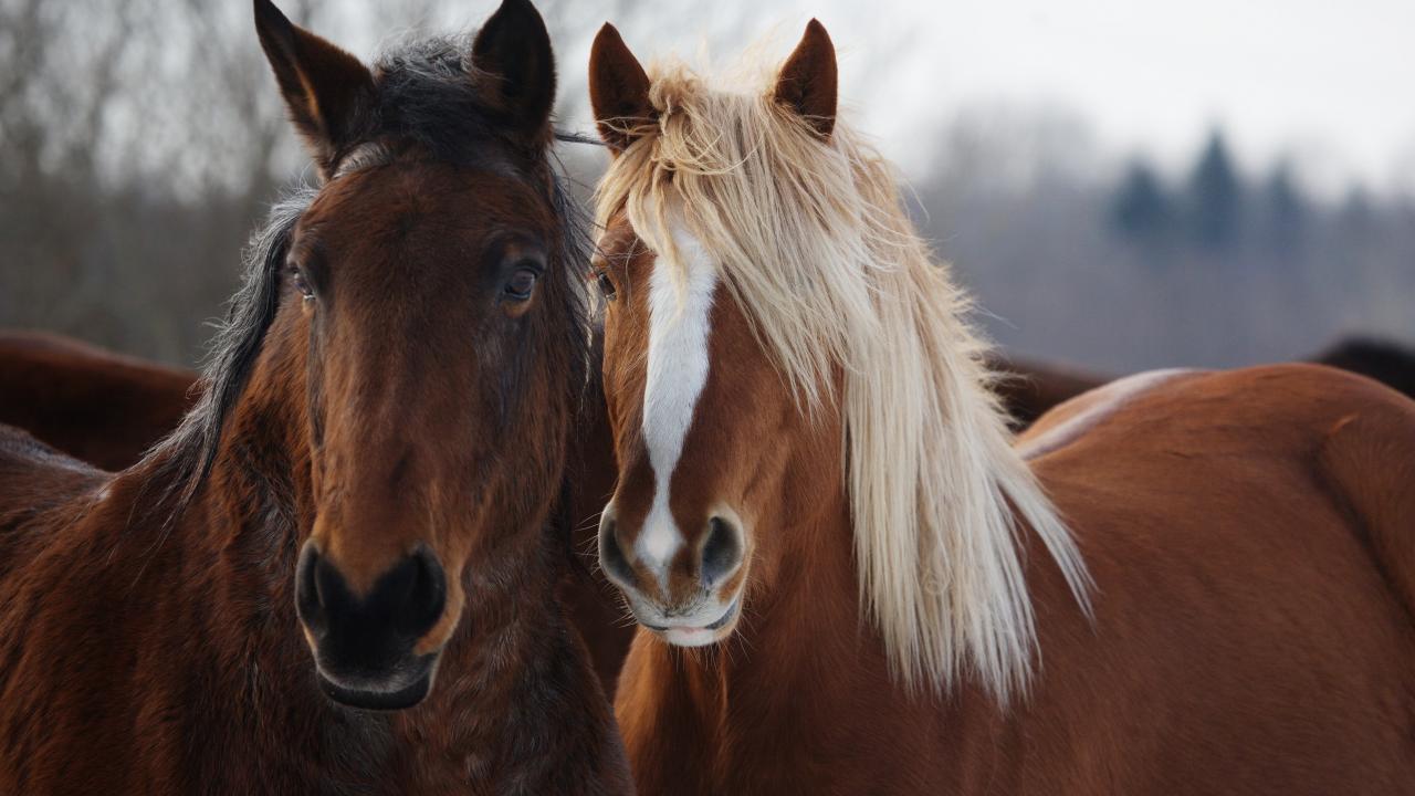 Wallpaper Beautiful brown horses jumping on the ground under the beautiful sky