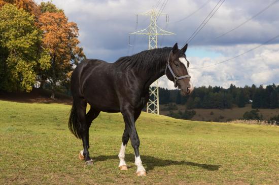 Wallpaper Black labrador with his tongue sticking out walks along the green grass