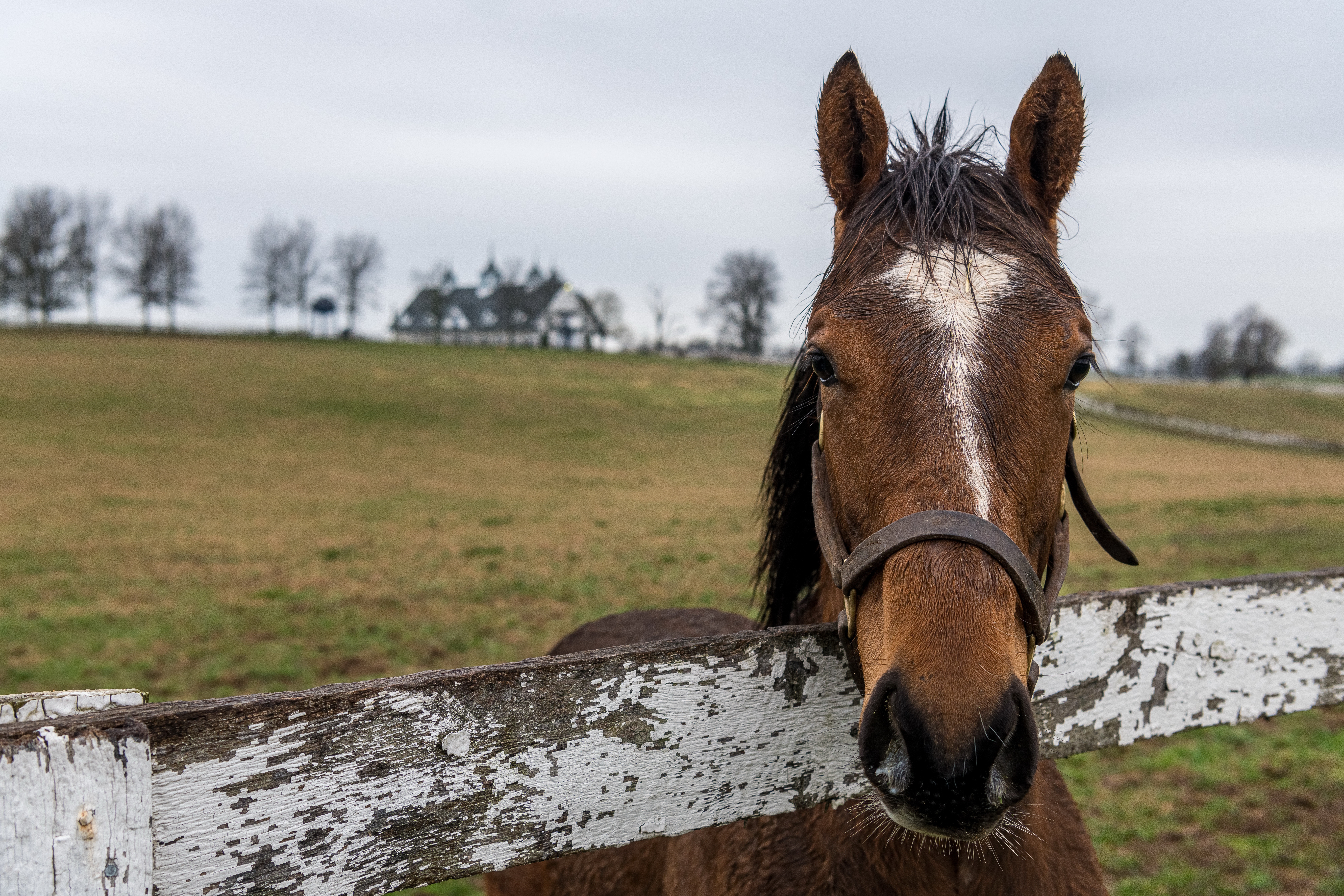 Wallpaper Brown horse behind a wooden fence