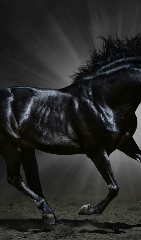 Wallpaper Beautiful black horse in the rays of light