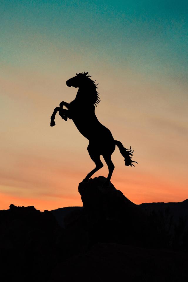 Wallpaper Horse silhouette on top of a mountain at sunset