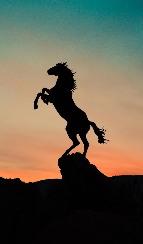 Wallpaper Horse silhouette on top of a mountain at sunset
