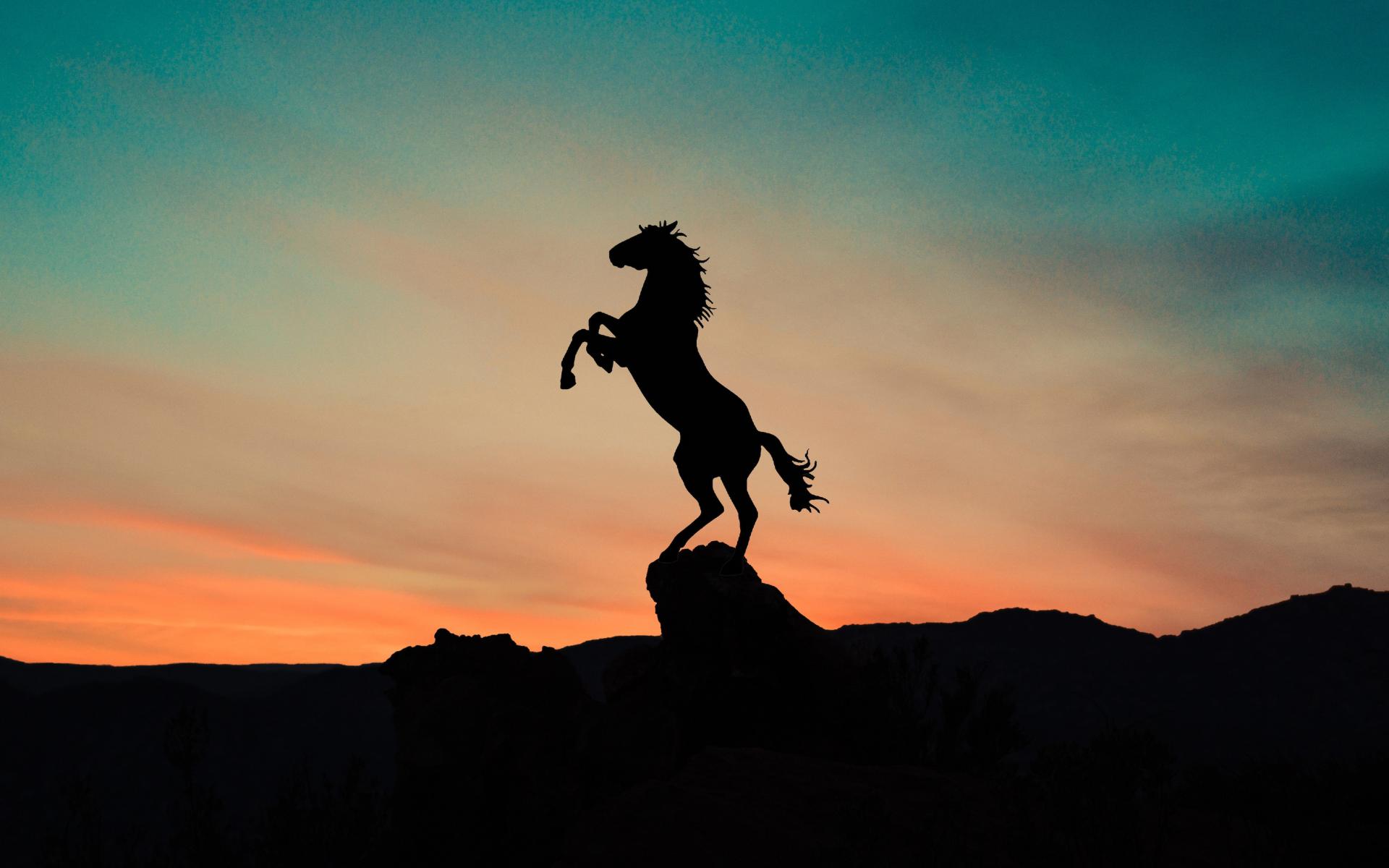 Wallpaper Horse silhouette on top of a mountain at sunset