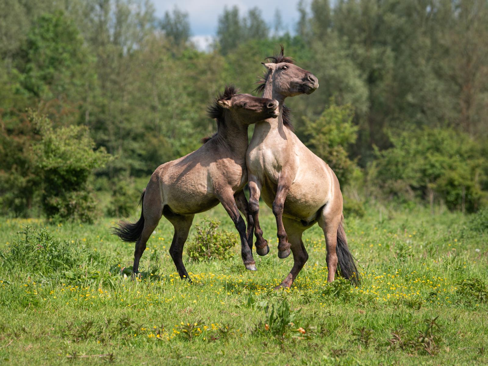 » Wallpaper Two horses playing on green grass