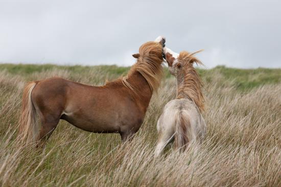 Wallpaper Horses graze in the fog
