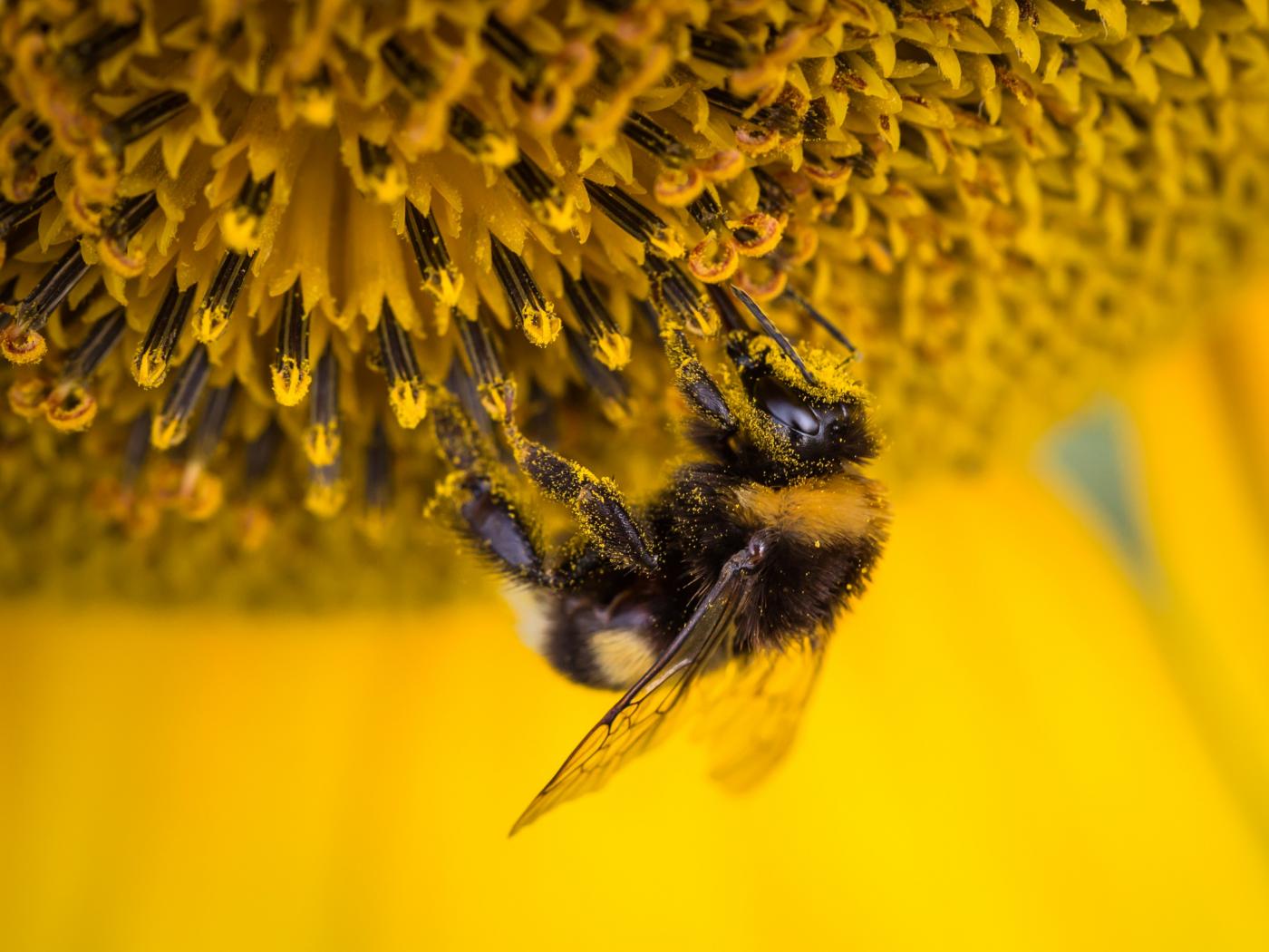 Wallpaper Small bee on a sunflower