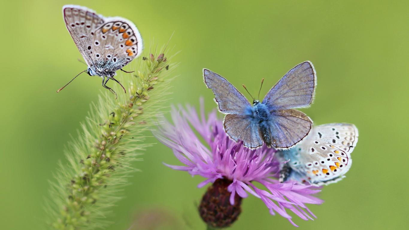 Wallpaper Blue butterflies on a pink flower