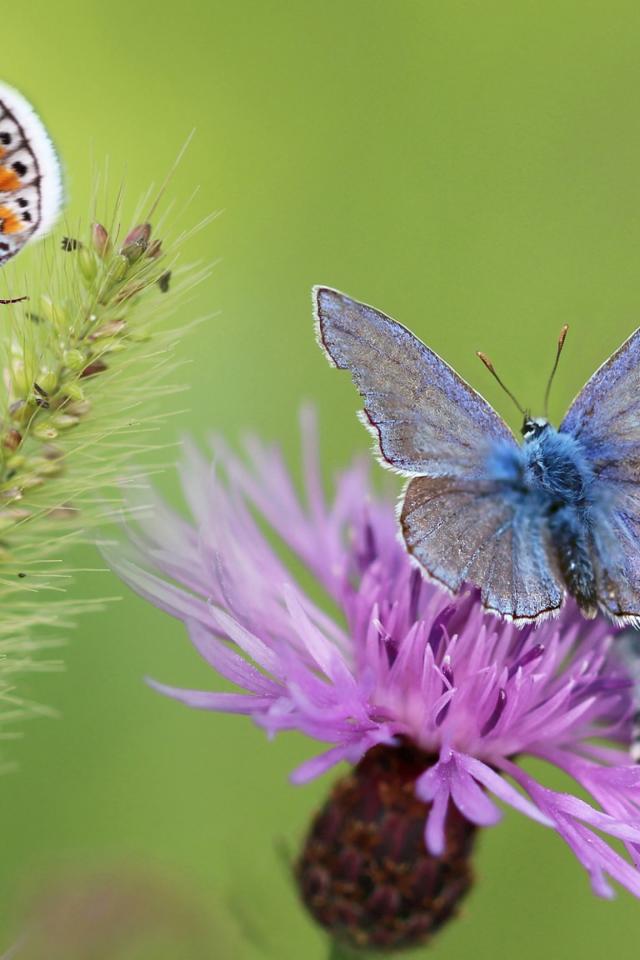 Wallpaper Blue butterflies on a pink flower