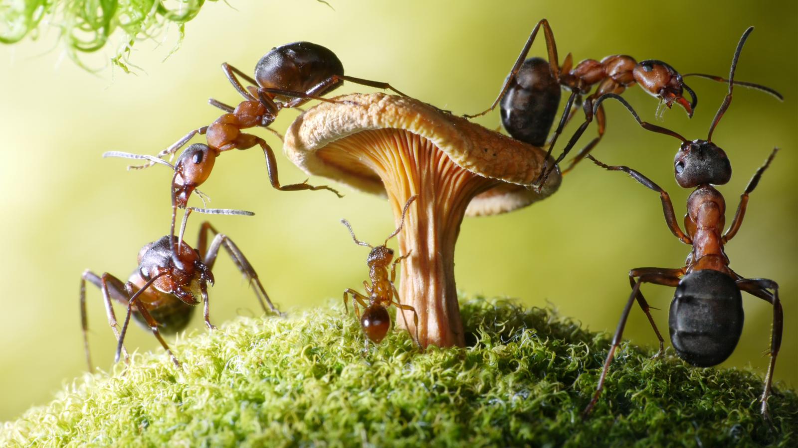 Wallpaper Ants on the mushroom close-up