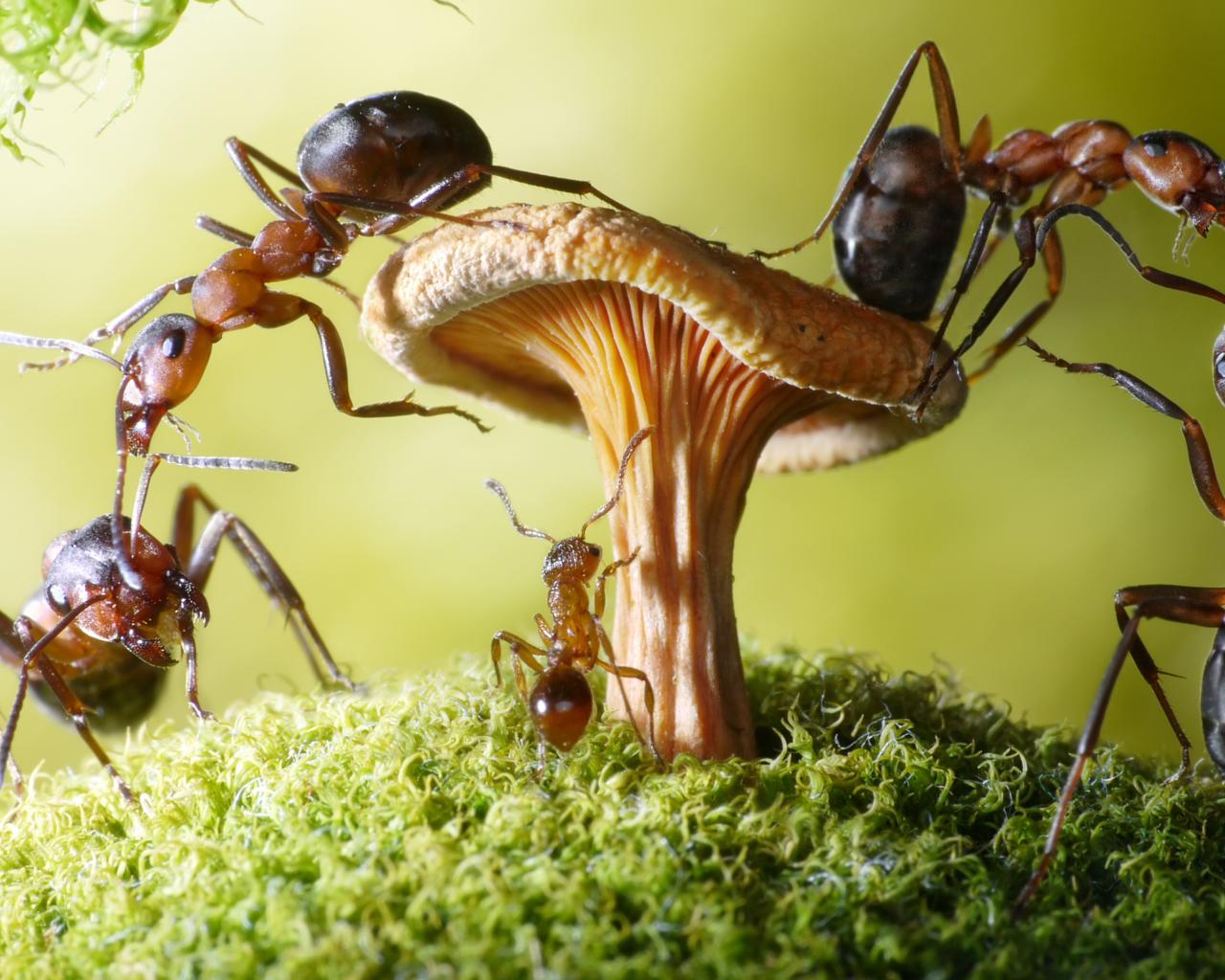 Wallpaper Ants on the mushroom close-up