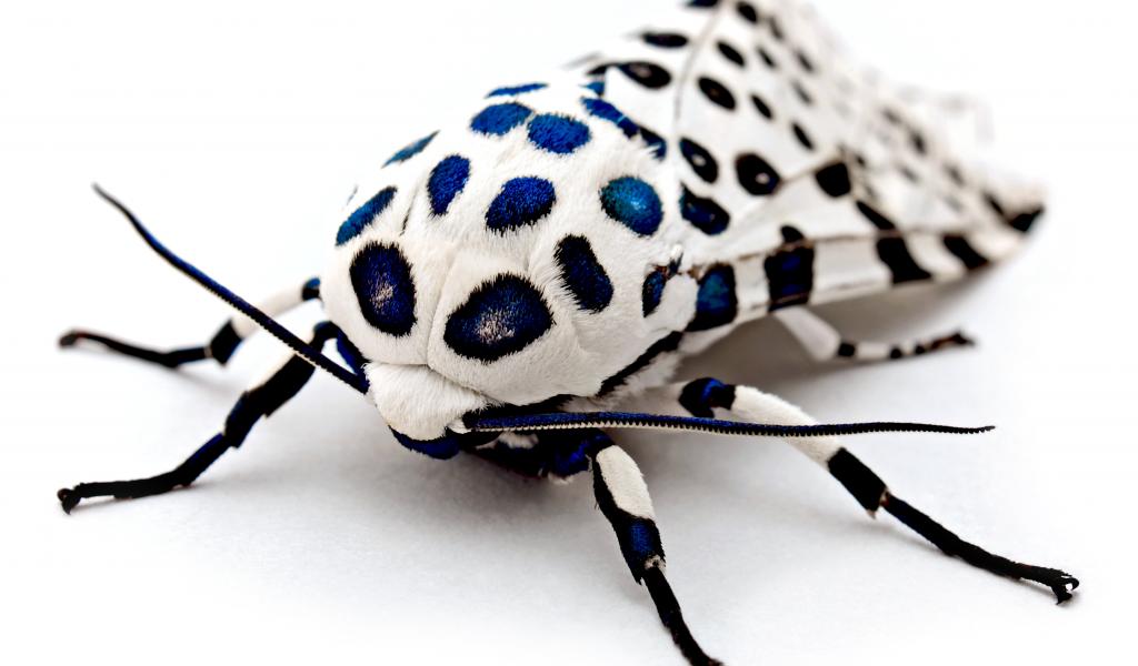 Wallpaper Unusual giant leopard moth on a white background