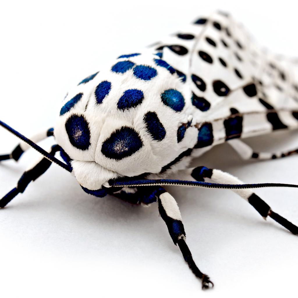 Wallpaper Unusual giant leopard moth on a white background