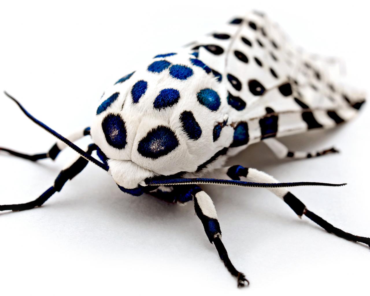 Wallpaper Unusual giant leopard moth on a white background