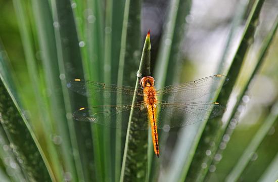 Wallpaper Dragonfly sits on a green leaf close-up photo