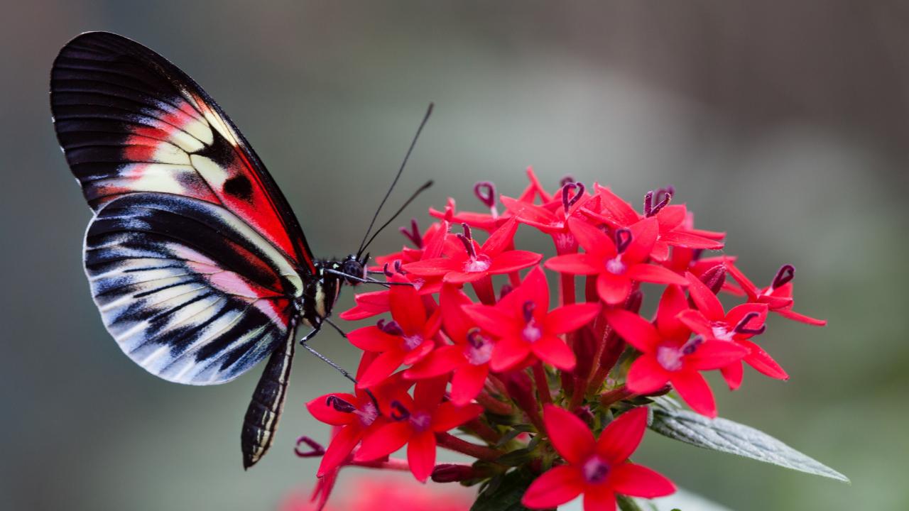 Wallpaper Beautiful butterfly on a red flower