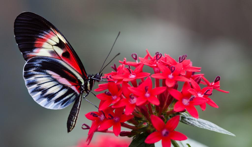 Wallpaper Beautiful butterfly on a red flower