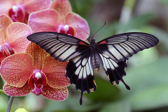 Wallpaper Beautiful butterfly sitting on a flower of a pink orchid