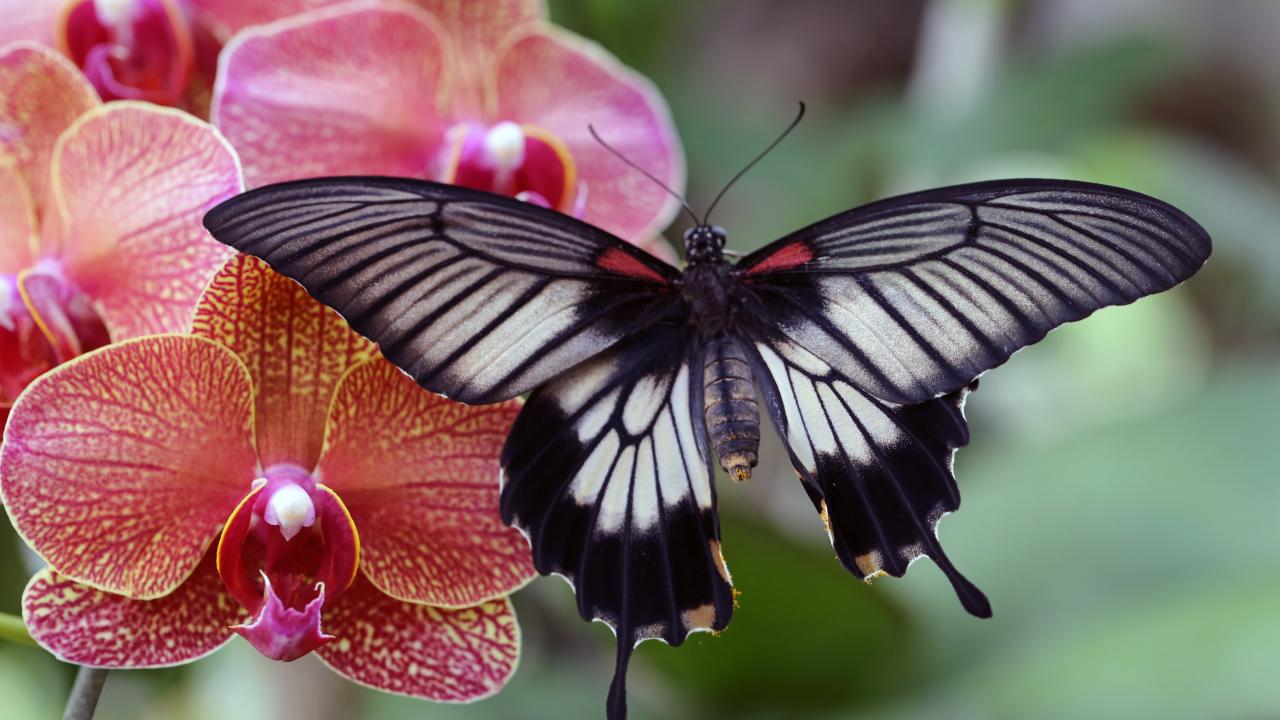 Wallpaper Beautiful butterfly sitting on a flower of a pink orchid
