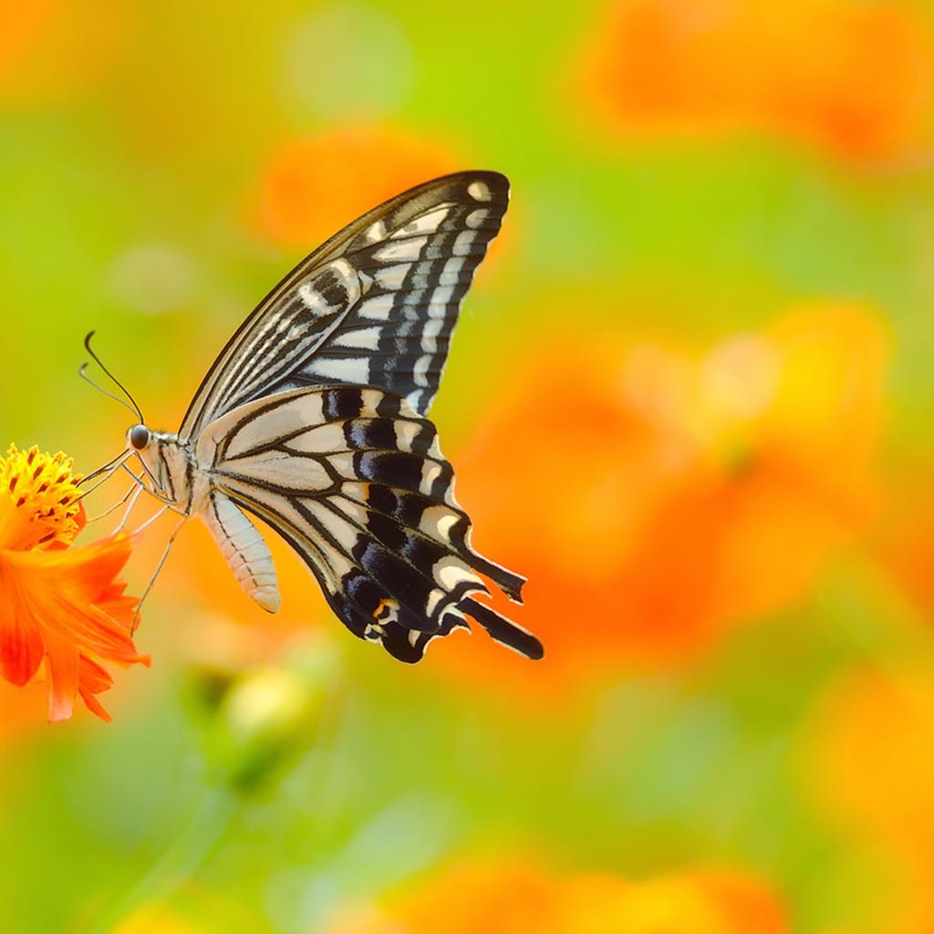 Wallpaper Beautiful butterfly butterfly sits on an orange flower