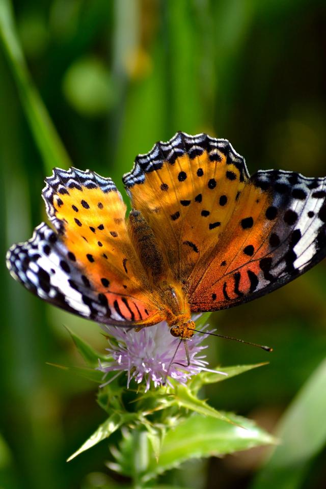 Wallpaper Beautiful butterfly sits on a thistle flower