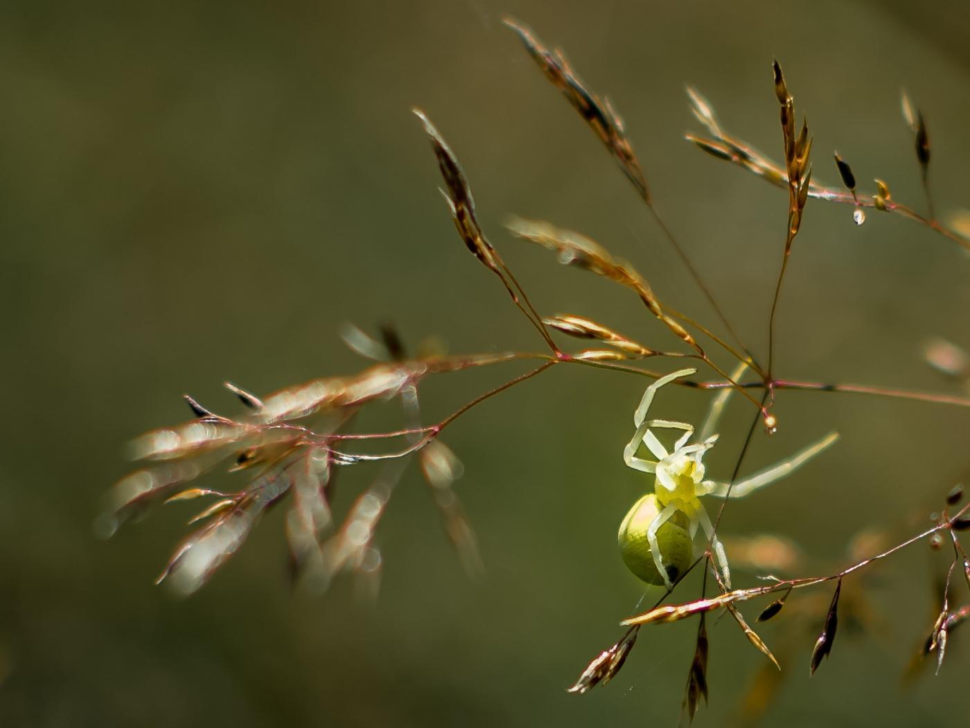 Wallpaper A green spider hangs on a spikelet