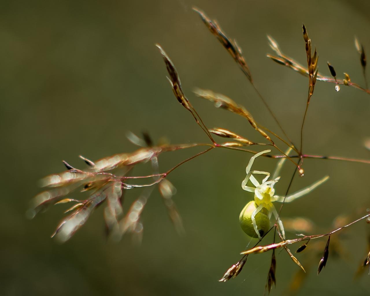 Wallpaper A green spider hangs on a spikelet